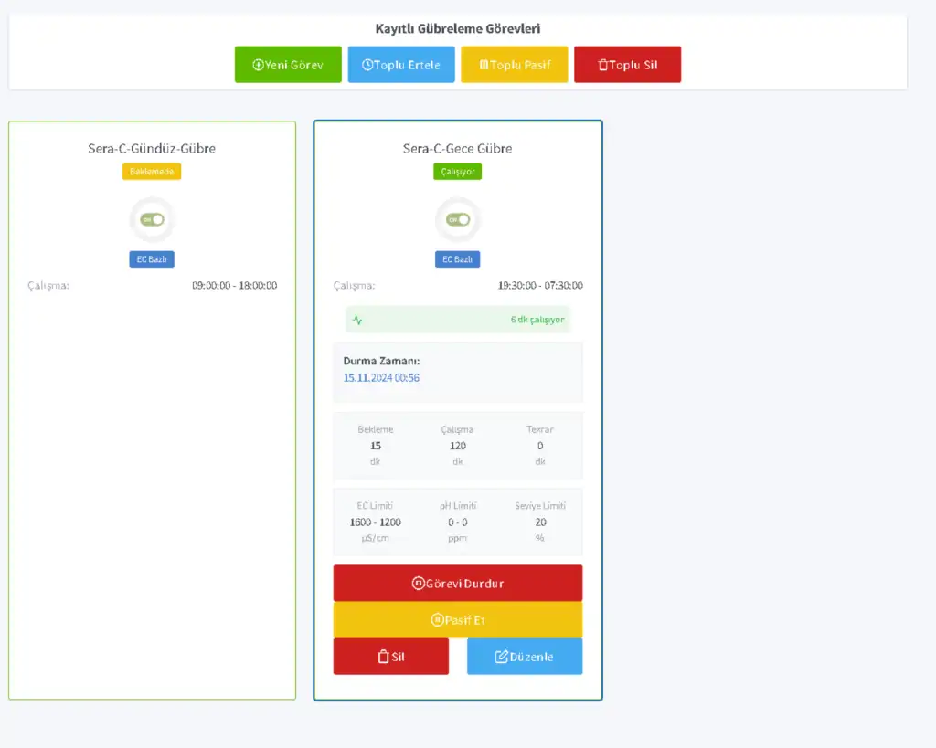 EC ve pH değerleri, bitkilerin besinleri nasıl aldığını ve toprak koşullarını anlamanızı sağlar. Otomatik ayarlamalarla, bitkilerinizin ihtiyaç duyduğu besinleri tam zamanında ve doğru miktarda sağlayarak, maksimum verim elde edersiniz. EC ve pH ölçüm verilerine dayalı olarak, gübre ve asit miktarlarını otomatik olarak ayarlayabilen sistemimiz, bitkilerinizin ihtiyaç duyduğu besinleri en optimal düzeyde sağlar. Bu sayede, hem bitkilerinizin büyüme sürecini optimize eder hem de gübre ve su israfını minimize edersiniz.