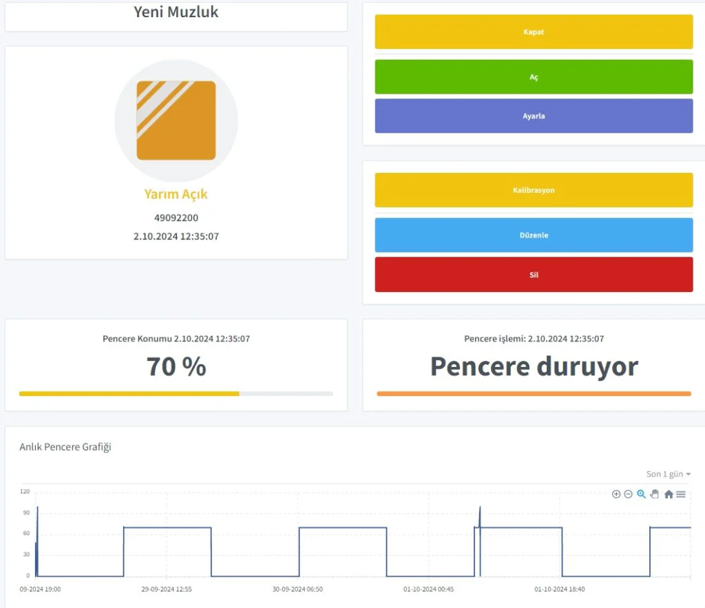 3. Central Management Software: A software infrastructure was established that allows all systems to be managed through a single platform. Thanks to this software, the greenhouse owner can plan ventilation and irrigation programs, monitor the status of valves and ventilation (window) status in real-time, and set automatic programs.