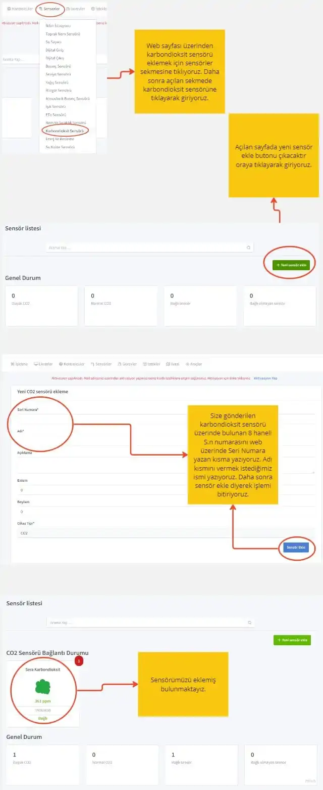 Puede añadir fácilmente el sensor a su negocio iniciando sesión en el sistema con el correo electrónico y la contraseña de usuario que se le proporcionaron y siguiendo los pasos indicados en la siguiente imagen.