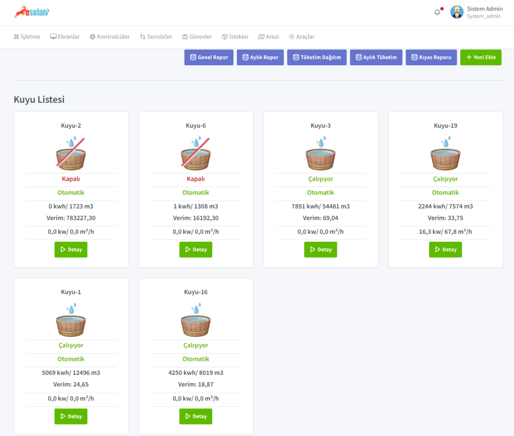 Today, one of the most important problems in water production, irrigation, and other water-related processes is energy consumption. Especially in drip irrigation and sprinkler irrigation methods, the pumps used to pressurize water have to operate for long irrigation periods. Unnecessary irrigation increases electricity consumption at this point. Furthermore, the inability to detect situations such as bursts or leaks and not monitoring the water source or pump performance over time increases unnecessary costs and resource waste.