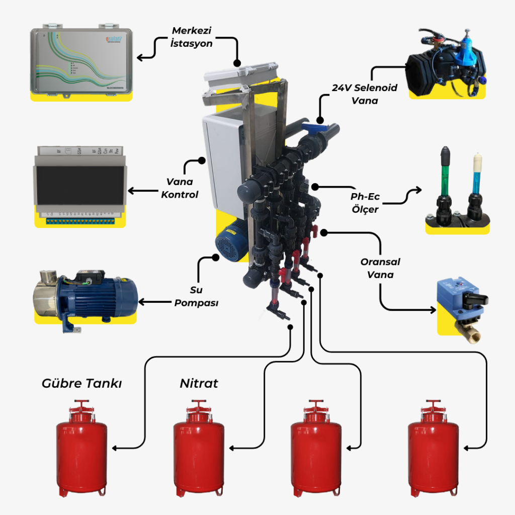 Fertilization automation is an advanced application aimed at meeting water and nutrient needs in the most effective way in modern agriculture. This system, based on the direct delivery of water and fertilizer to the plant in agricultural lands, provides a great advantage to farmers. With fertilization automation, unnecessary losses are prevented by providing the plant with only as much water and nutrient elements as its nutritional needs. If we look at how this system works;