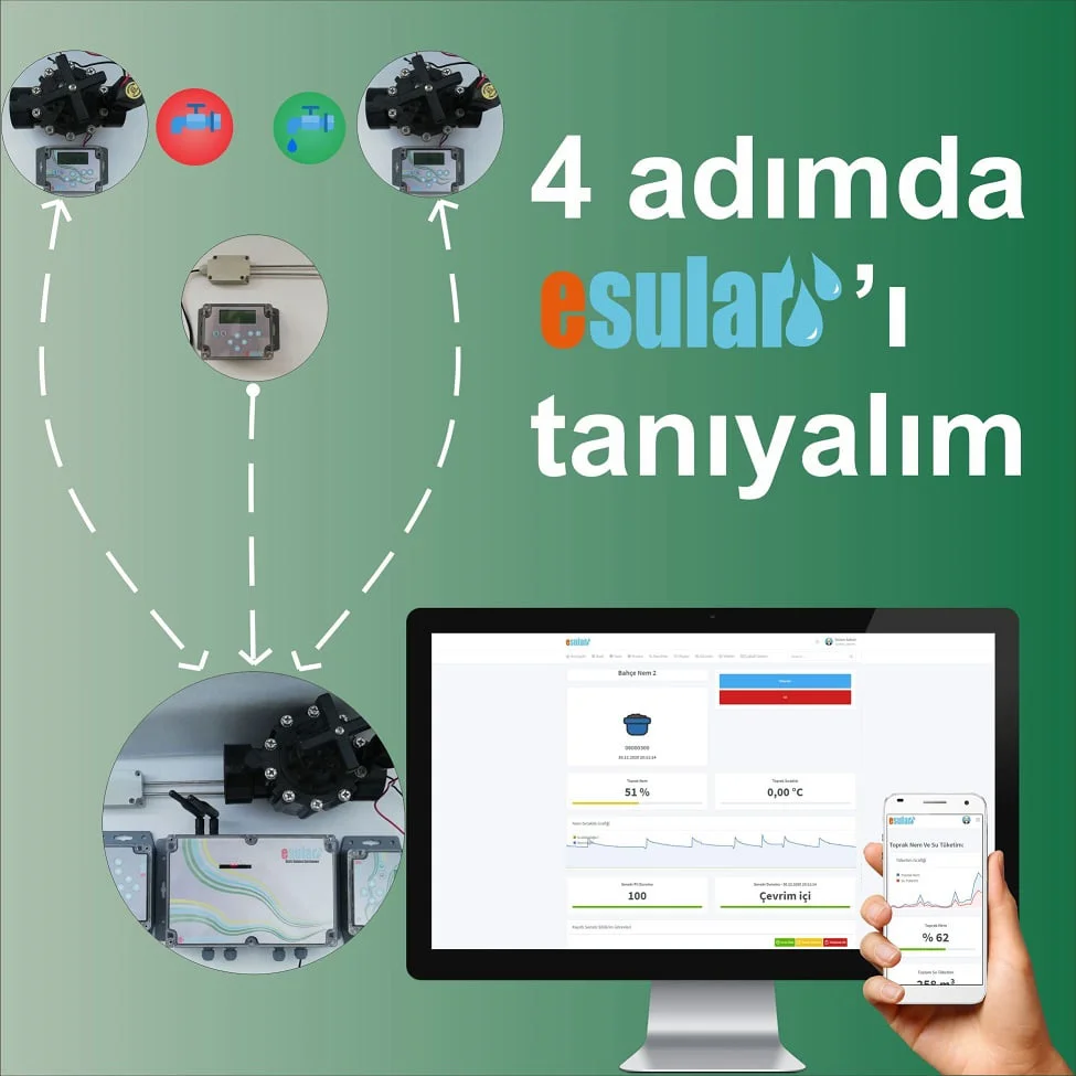 What is the esular smart irrigation automation solution? Our system, which offers GSM-controlled remote valve control automation, also allows for effective with sensors. Thanks to its practical and wireless structure, it offers an effective solution in large agricultural lands and areas where automation is difficult.