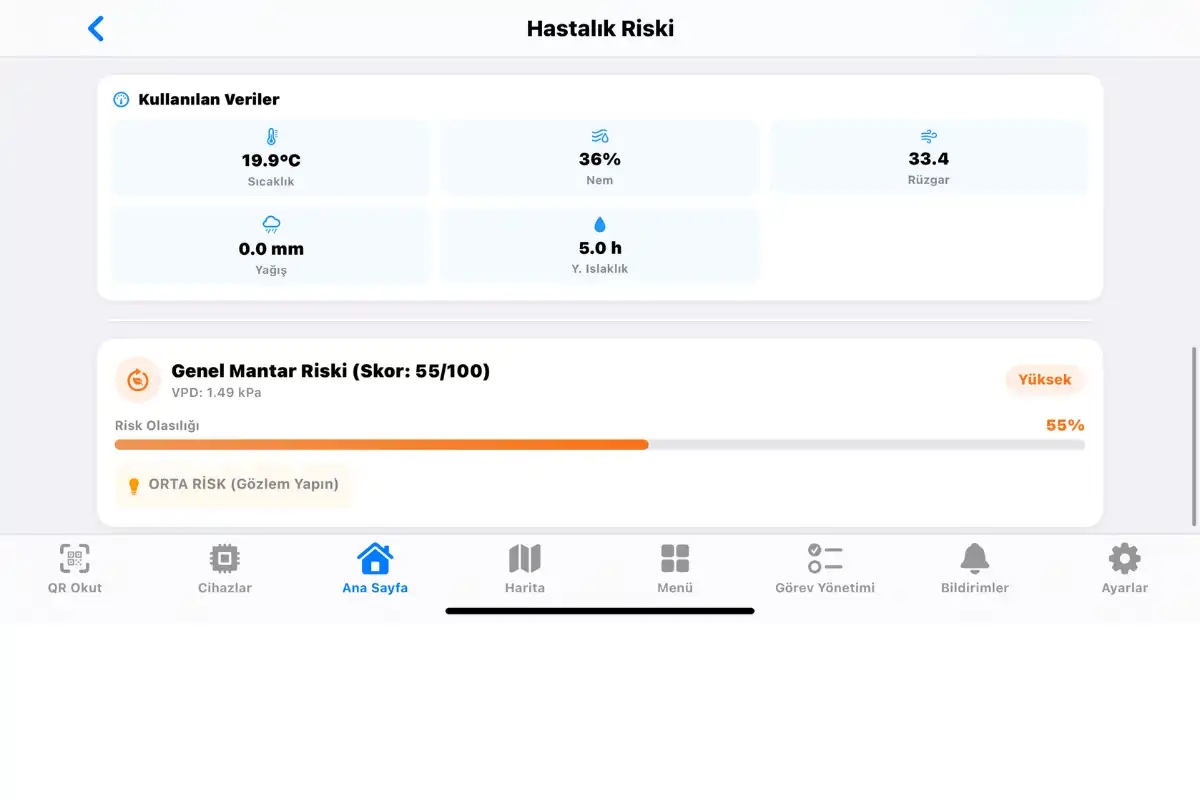 Tarımsal işletmenize özel hastalık riski analiz çözümleri ve akıllı sulama entegrasyonları hakkında detaylı bilgi almak için uzman ekibimizle görüşebilirsiniz.