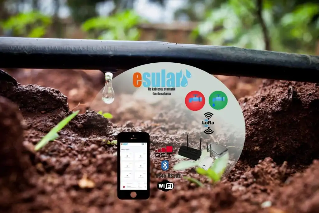 Esular olarak sunduğumuz kablosuz sulama otomasyonu ve akıllı sulama çözümümüz ile birlikte büyük tarım alanları, meyve bahçeleri, şehir içi peyzaj alanları ve golf sahası, futbol sahası, villa, otel vb. alanlarda kablosuz otomatik sulama çözümü sağlayan ekipman ve teknolojiler sulama alanlarının otomasyonunu sağlamaktayız.