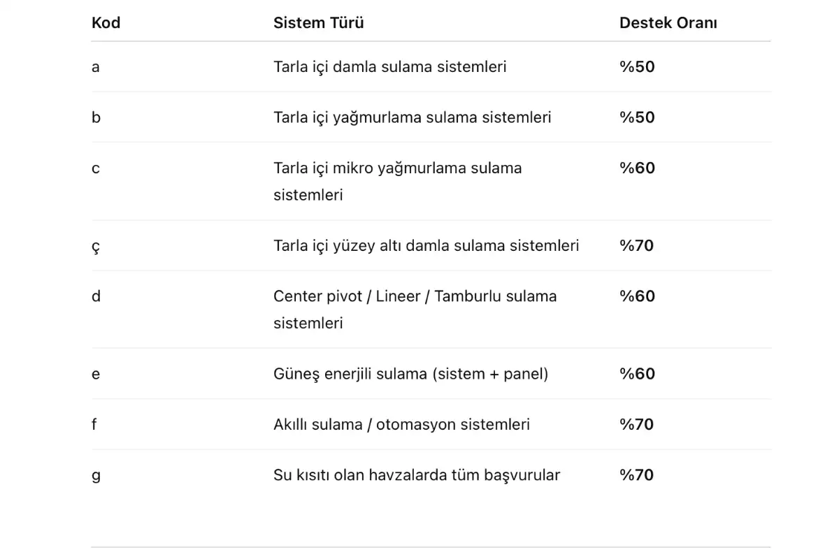 - Daha önce aynı parsel için son 5 yıl içinde bireysel sulama desteği almamış olmak.