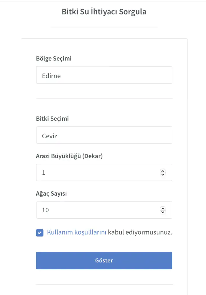 Nümunə şəkillərdə də gördüyünüz kimi, istifadəçi dostu interfeysimiz sayəsində bütün bu məlumatlara asanlıqla daxil ola və anında suvarma planlamanızı edə bilərsiniz. Suvarma təqvimləri regional və mövsümi məlumatlarla dəstəklənir və bitki növlərinə uyğun olaraq fərdiləşdirilir. Bu sayədə hansı dövrdə nə qədər suya ehtiyacınız olacağını əvvəlcədən bilərək daha səmərəli və davamlı əkinçiliyə sahib ola bilərsiniz. Texnoloji həllər və ağıllı, davamlı kənd təsərrüfatı haqqında daha ətraflı məlumat almaq və sistemlərinizi rəqəmsallaşdırmaq üçün bizimlə əlaqə saxlaya bilərsiniz.