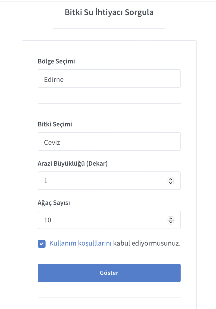 Additionally, in our application, we offer an informative section to determine the water needs of plants growing in various regions and to optimize irrigation planning. Thanks to this feature, by specifying in which city, on how many decares of land, and which plant you are growing, you can learn how much irrigation you should do in which periods throughout the year.