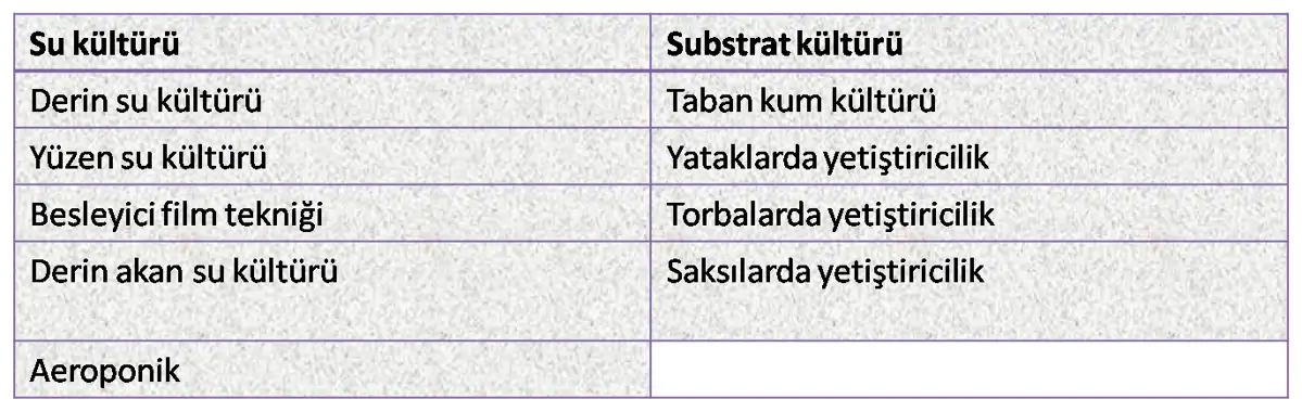 Topraksız yetiştiricilik, geleneksel tarım yöntemlerinden farklı olarak bitkilerin toprağa ihtiyaç duymadan yetiştirildiği bir sistemdir. Bu yöntemde, bitkilerin kökleri toprak yerine su, hava ve besin maddelerini içeren farklı ortamlarda bulunur. Topraksız tarım, verimliliği artırmak, su ve gübre kullanımını azaltmak, hastalık ve zararlılara karşı daha dirençli bitkiler yetiştirmek ve mevsim dışı üretimi sağlamak gibi bir çok avantaj sunar. Topraksız yetiştiricilik yöntemleri ise şu şekildedir;