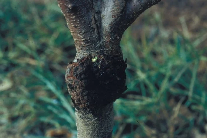 根癌病的感染始于植物伤口处;排水不良、碱性土壤以及先前由线虫造成的取食损伤有助于该病的发生。