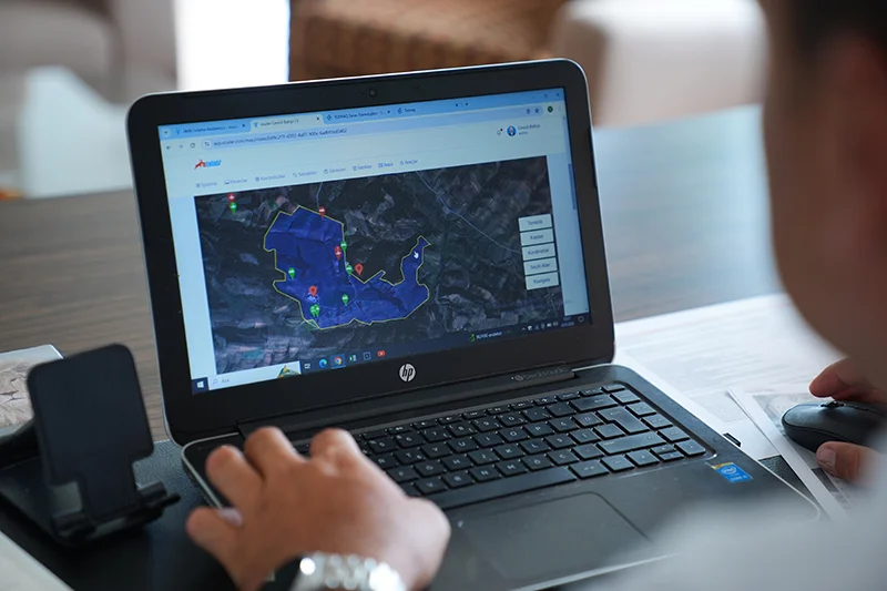 “Kullanıcı mobil uygulamanın ara yüzüne girdiğinde öncelikle arazisinde hangi cihazlar var, kaç vanası, sensörü, pompası var, onları görüyor. Sonra detaylar kısmına girdiğinde hem anlık hem de geçmişe yönelik haftalık, aylık, yıllık veriler ve bolca grafikler var. Bunları raporlandırabiliyor, arazinin haritasını görebiliyor. Cihazların hepsini ekleyip anlık olarak takip edebiliyor. Bir de arka hesap bildirim sistemlerimiz var. Hani vanası açıldı, sulama başladı ve kapandı, pompası çalıştı diye. Çiftçi bunları uygulama içerisinden de görebiliyor. Aynı zamanda biz telegram üzerinden sürekli bildirim gönderiyoruz. Sistemler de zaten akıllı olup kendileri çalıştığı ve aksiyon alan sistemler olduğu için 7/24 hiç uygulamaya girmeden de aslında süreci takip edebiliyoruz.”